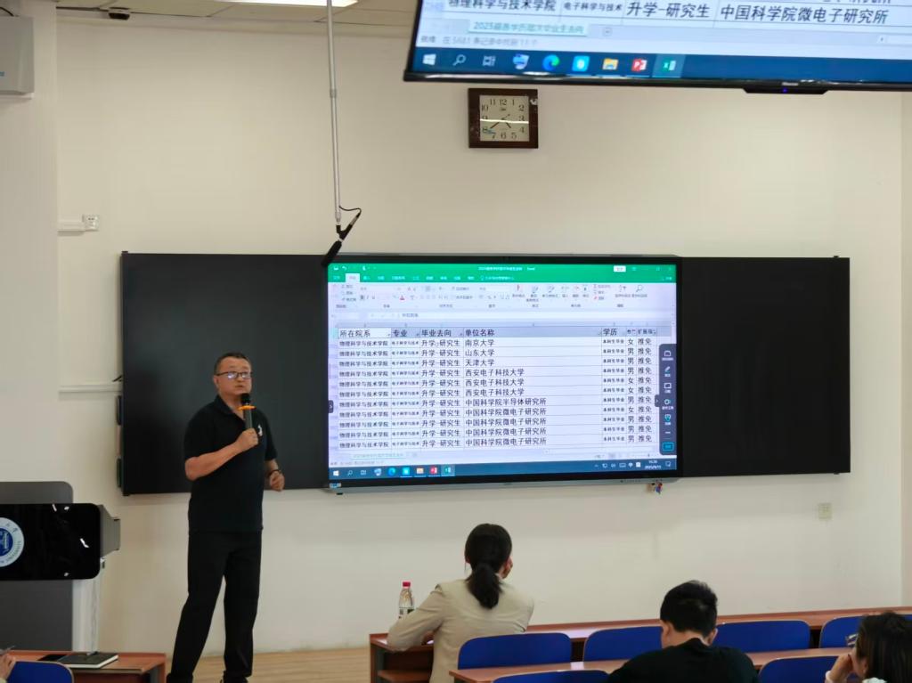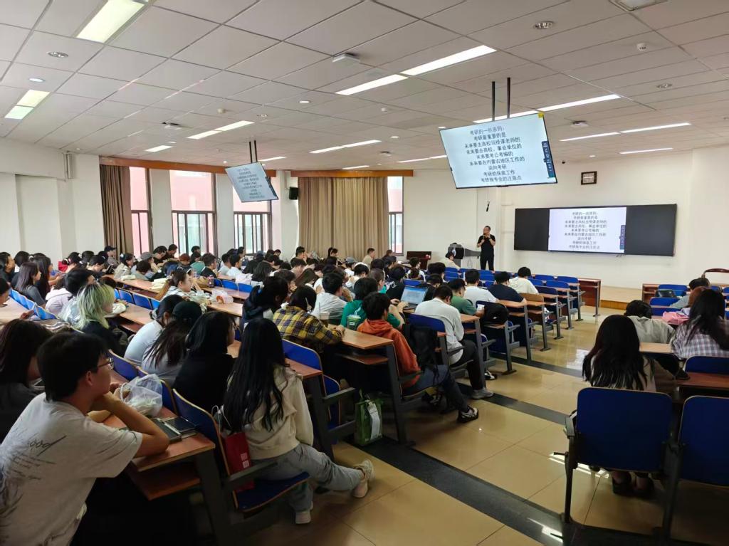 讲座中,于轶为毕业生们详细介绍了近几年毕业生去向数据,分析了考公、保研、考研、企业就业等不同去向的具体情况。他说,毕业生需客观认识自身优势与市场需求,树立“多线程准备、精准发力”的求职理念,牢牢把握秋招、春招等就业黄金期。