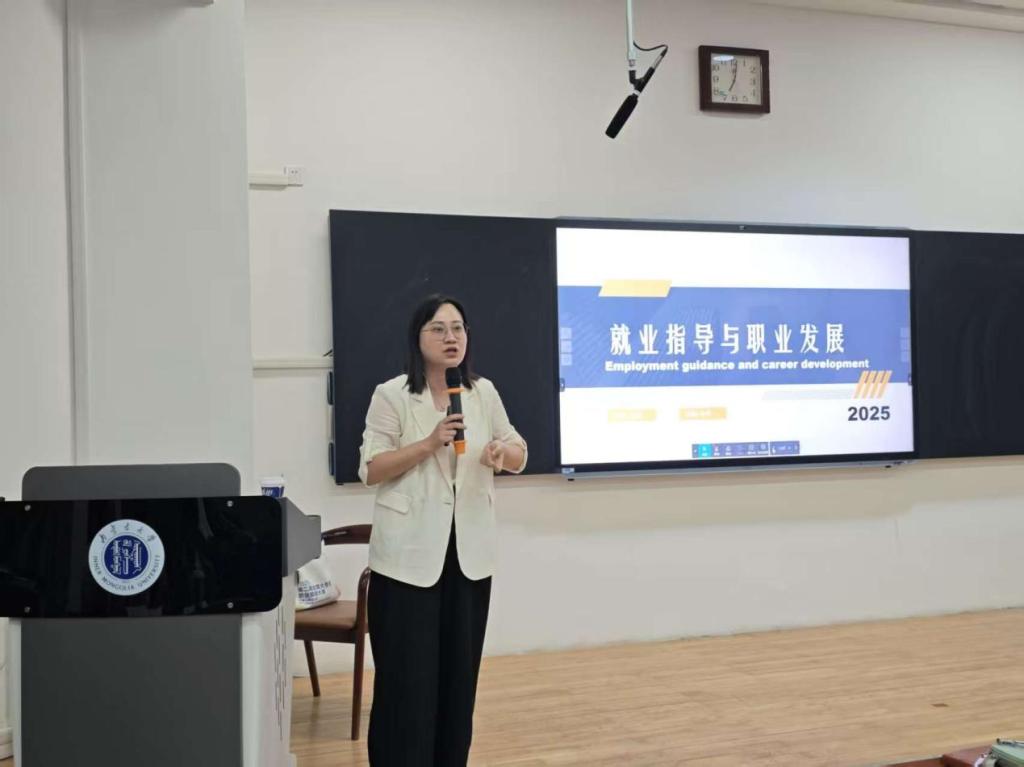 近日,我院在赛罕校区卓越楼阶梯教室四举办“就业指导与职业发展”专题讲座。本次讲座特邀纪检监察学院党总支副书记高虹主讲简历制作技巧。讲座由学院专职辅导员潘国庆主持,全体2026届毕业生参加讲座。