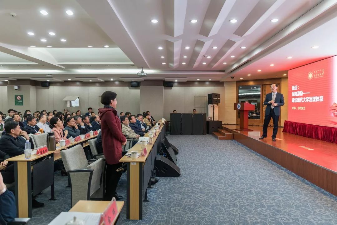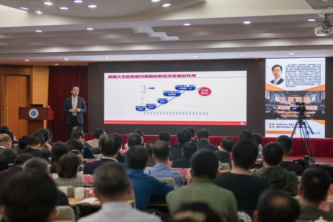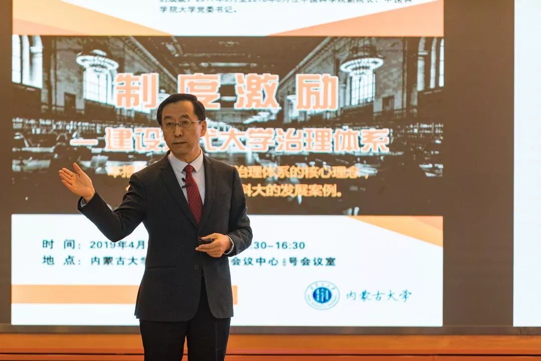 2019年4月19日下午,举办了第四场学术报告《制度激励——建设现代大学治理体系》。本次讲座是受自治区党委宣传部、自治区高校工委、自治区团委的共同邀请,张杰院士为自治区教育界同仁和我校领导干部举办了“建设亮丽内蒙古 共圆伟大中国梦”全区高校百场形势政策报告会。