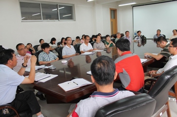 2014年6月19日下午4:30,ok138cn太阳集团529在综合教学楼0617室召开了全院教职工大会布置期末工作。ok138cn太阳集团529党总支书记施道明、院长李前忠教授、副院长赵国军教授、副院长宫箭教授、副院长、团总支书记谢峻鹏和全院教职工参加了会议。