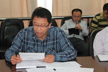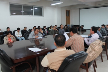 院长李前忠教授通报了学院工作周志的相关情况和今年学院人才引进工作的进展情况,传达了《OK138太阳集团关于开展2014年专业技术职务评审工作的通知》文件精神,对部分内容进行了强调,并对科研业绩档案的填写要求和学院综合实力提升方面经费的使用方法进行了详细说明。