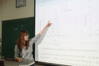 2013年5月6日下午,ok138cn太阳集团529在综合教学楼0411室举办了大学生创新性试验计划项目和本科生创新培养基金项目研究进展报告会。ok138cn太阳集团529李宏教授、陈颖丽副教授、张利绒副教授、刘奕帆博士、朱俊博士组成中期验收专家小组,对项目的进展情况进行了检查验收。