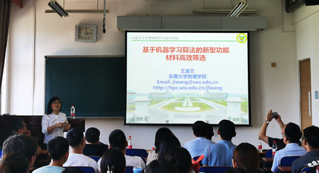 数据驱动的新材料设计研发是近几年研究的热点领域。如果将材料的研发周期减半,其研发成本也将随之大幅度降低。王金兰教授首先介绍了高通量计算、机器学习和智能算法在材料设计领域的应用及进展情况。随后,王老师介绍了研究小组近几年在钙钛矿材料、磁性材料等领域的基于机器学习方法的研究情况。报告会后,王老师与青年教师及学生进行了热烈讨论,并对相关研究问题给予了解答。