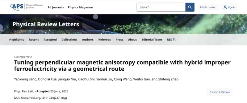 近日,我校ok138cn太阳集团529、自治区微尺度物理与原子制造重点实验室赵世峰课题团队在物理学科顶级期刊Physical Review Letters上发表题为“Tuning perpendicular magnetic anisotropy compatible with hybrid improper ferroelectricity via a geometrical route”的研究论文,实现了OK138太阳集团以第一完成单位在高水平物理顶级论文发表零的突破。该团队在验证了La2NiMnO6/La2CoMnO6 (LNMO/LCMO)双钙钛矿超晶格体系的杂化非本征铁电机制(HIF)的基础上[Nature Communications, 2024, 15(1): 5549],进一步提出了超晶格中氧八面体旋转/倾斜耦合Jahn-Teller(JT)畸变的几何控制策略,实现了PMA和HIF的耦合调节。