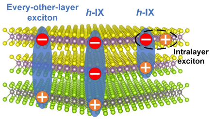 基于过渡金属二硫化物(TMDs)的范德华(vdW)异质结构被视作研究激子物理学的理想平台,能够提供丰富的激子景观。目前vdW异质双层中三种类型的激子已被人们广泛研究,分别是层内激子、层间激子(IX)、以及两者混合的杂化激子。其中层间激子因其优异的特性已被广泛用于探索多体效应,并在光电转换和激子集成电路领域中大放异彩。但以往的研究大多都是集中在由单层TMDs组成的异质双层之中,而将其拓展到三层甚至是更多层是否还能普遍获得空间分离的层间激子甚至是提供全新的激子种类,仍是一个悬而未决的问题。