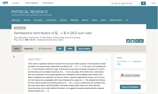 in QCD sum rules”为题,于2023年12月13日发表在物理学TOP期刊Physical Review D上(图1)。