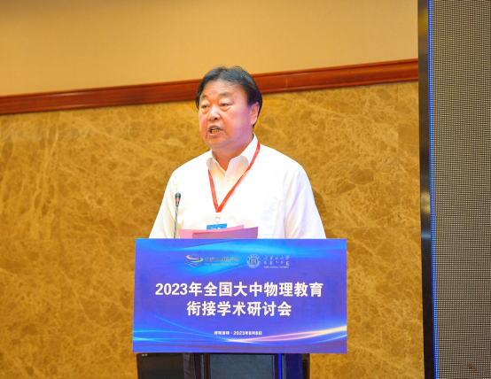 教育部高等学校大学物理课程教学指导委员会副主任委员、大中物理教育衔接工作委员会主任委员、浙江工业大学施建青教授致辞