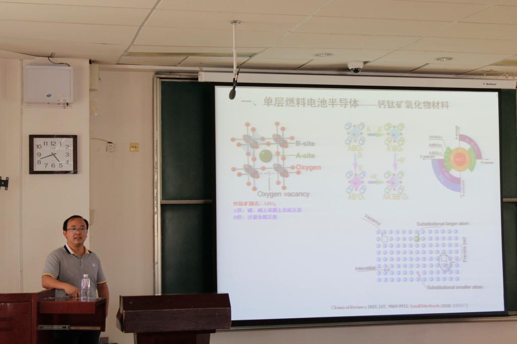 朱成军教授对此次报告人范梁栋副研究员作了简单的介绍。报告中介绍了钙钛矿氧化物在能源转换与储存领域的应用,并分享了在钙钛矿氧化物表面金属/氧化物纳米颗粒的偏析领域开展的半导体-离子导体燃料电池和低温电催化(氧还原和氧析出)应用最新研究进展。报告会上范梁栋副研究员对学生们提出的问题进行了详细耐心的讲解。