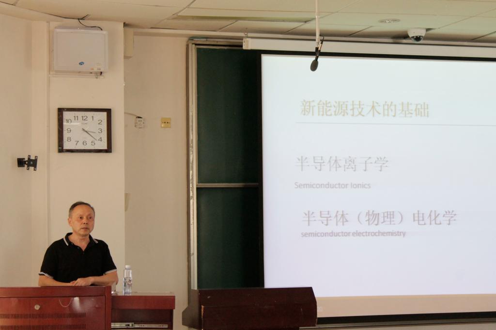 朱成军教授对此次报告人朱斌教授作了简单的介绍。报告中朱斌教授从半导体离子学的角度讲述了半导体和异质结构设计和发展新型超离子导体和离子输运研究的理论基础,并详细介绍了半导体异质结燃料电池发展方向和研究思路。报告会上朱斌教授对学生们提出的问题进行了详细耐心的讲解。