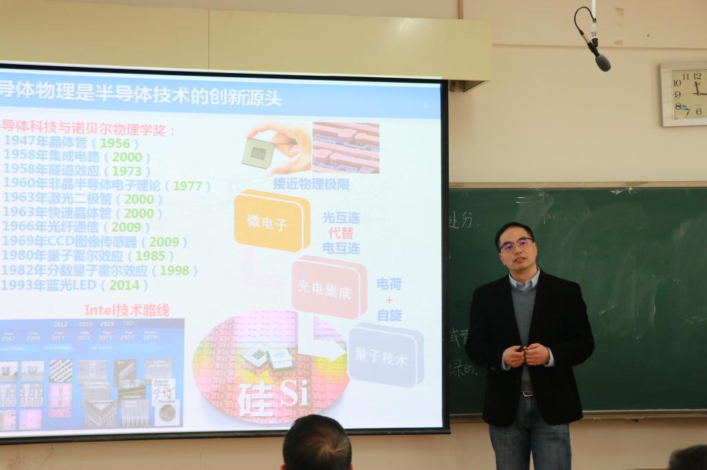 2020年1月3日上午11:10,应ok138cn太阳集团529邀请中国科学院半导体研究所骆军委研究员在卓越楼0217作了题为“片上集成硅基光源”的学术报告。报告主持人为ok138cn太阳集团529屈媛副教授。参加人有物理学院部分教师、研究生和本科生50多人。