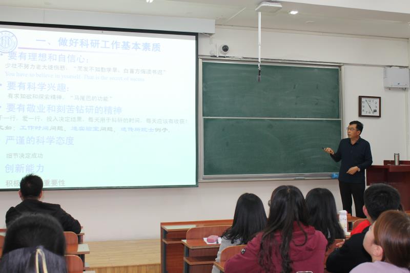 报告会开始后,李前忠教授首先利用“马尾巴的故事”等生动事例切入本次报告的主题。随后,从“做好科研工作应具备的基本素质”、“确定研究方向和选题”、“注重把握科研的整个过程”、“写好论文应该注意的问题”等多个方面告诫研究生,在未来的三年中如何将科学研究做地更专、更深、更有科研价值。