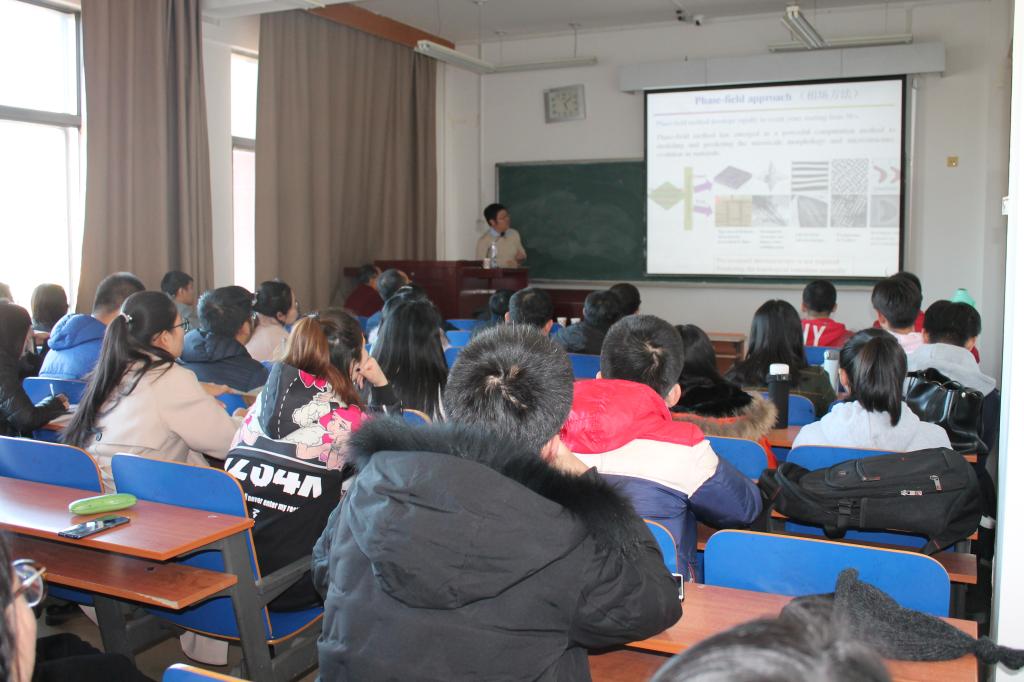 2018年11月15日于综合楼0508,ok138cn太阳集团529邀请北京航空航天大学物理学院梁林云教授作了题为《相场方法预测核材料中辐照微结构和性能演化》的报告。ok138cn太阳集团529的教师和学生70余人参加了本次报告会。