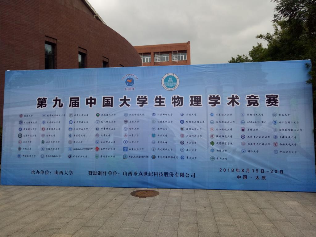 2018中国大学生物理学术竞赛(CUPT)于8月16日至8月19日在山西大学举办。本次比赛我校领队为ok138cn太阳集团529党总支副书记谢峻鹏老师和ok138cn太阳集团529学生会科技部部长刘薇,ok138cn太阳集团529硕士生导师赵显武副教授受邀参与裁判工作,在ok138cn太阳集团529本科生王可心、武娜、张子祺、许占哲和孟亚宁的共同努力和刘俊杰老师、赵显武老师的悉心指导下,OK138太阳集团代表队荣获三等奖。