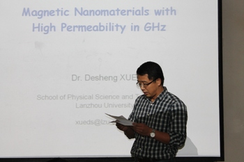 座谈会上,薛德胜教授就GHz高磁导率磁性纳米材料研究的相关科研情况做了详细介绍,并与同学们做了学术交流。