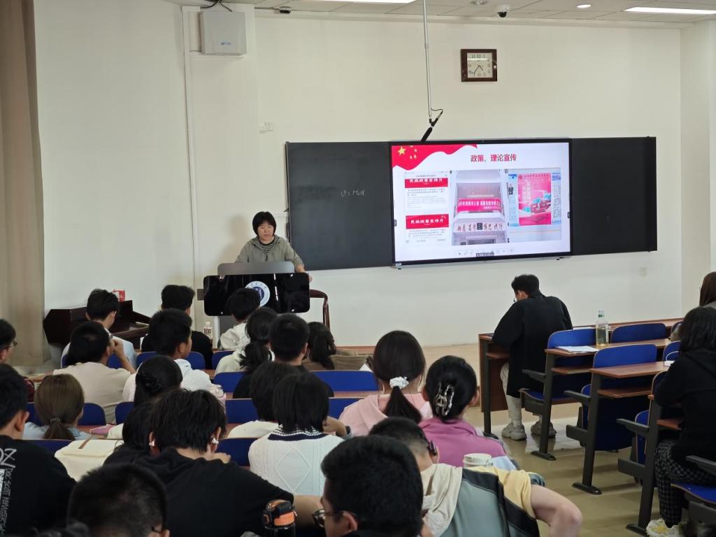 乌丽雅苏从中华民族共同体概念的提出、如何铸牢中华民族共同体意识以及我院宣传教育活动开展情况进行了介绍。此外,还介绍了学校相关职能部门业务范围、各类学生组织以及发展党员、团员工作流程。
