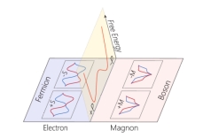 图1. 铁电极化同时对磁子和电子的多态调控示意图