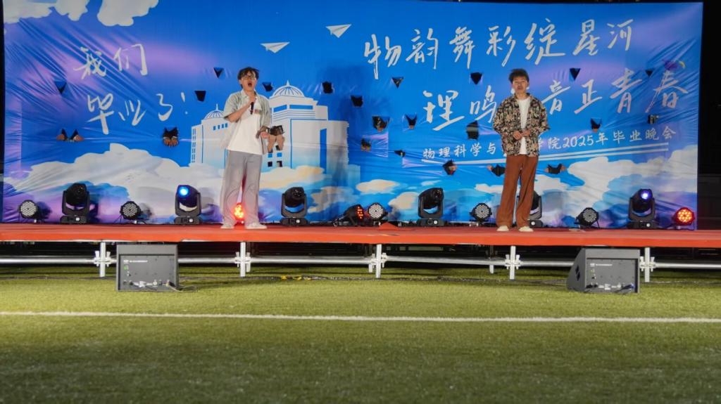 刘建宇以一曲《再见》轻诉离别的不舍,张超《知足》以温暖旋律抚慰心绪,将现场氛围推向离愁别绪的温情时刻。张超与田昊泽携手带来原创歌曲《纸飞机的尾迹》,搭配《后来的我们》的深情演绎,在回忆往昔与展望未来的交织中,勾勒出专属于毕业季的青春图景。