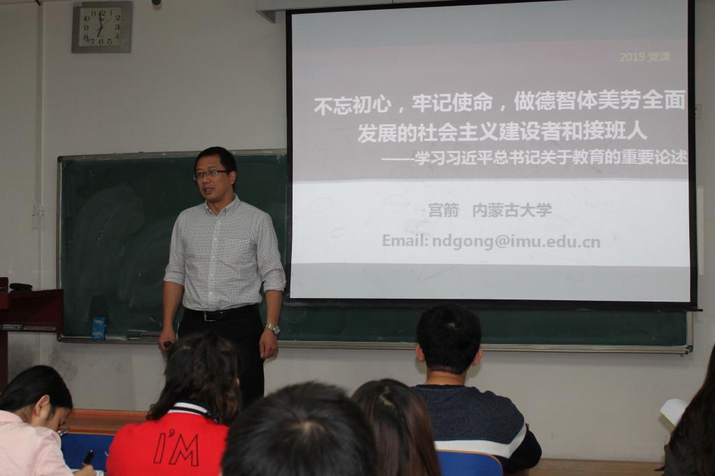 宫箭院长以十九大报告为基础,给同学们做了题为“不忘初心,牢记使命,做德智体美劳全面发展的社会主义建设者和接班人”的党课培训,主要就学习习近平总书记重要的教育理论为同学们展开论述,使同学们对新时代下中国的教育理念和核心有了充分认识。