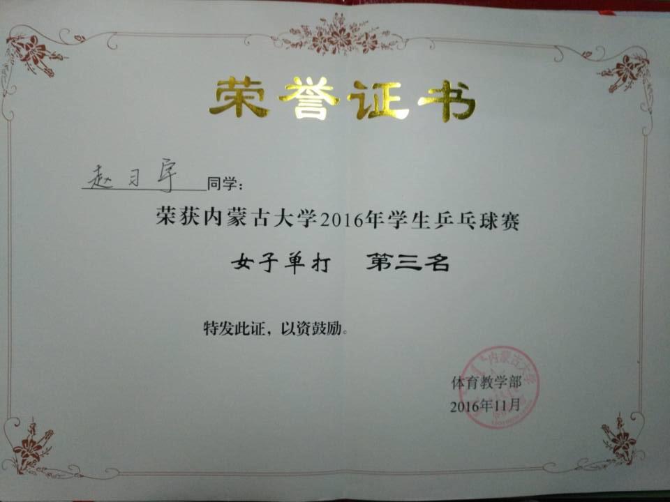 ok138cn太阳集团5292014级应用物理学专业的赵习宇同学在“OK138太阳集团2016年学生乒乓球赛”中获得女子组单打季军,为学院赢得了荣誉!