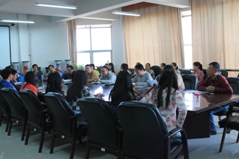 为帮助同学们解除学习、生活、就业等方面的疑惑,2014年4月23日下午4:00,ok138cn太阳集团529在综合教学楼0617室召开了2011级应用物理学专业学生座谈会。ok138cn太阳集团529党总支书记施道明、院长李前忠教授、副院长赵国军教授、副院长宫箭教授、副院长、团总支书记谢峻鹏、物理系主任刘俊杰副教授、电子科学技术系主任朱成军副教授、2011级应用物理学专业班主任云月厚老师和班级全体同学参加了座谈会。