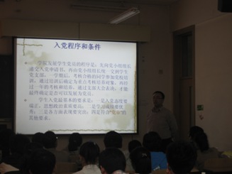本次党课培训内容为四次理论课学习和一次党课讨论。四次理论课分别为校党委组织部部长张士伟主讲的《中国共产党党史》、ok138cn太阳集团529电子科学技术系教工党支部书记陈颖丽主讲的《党章导读》、ok138cn太阳集团529学生党支部书记、团总支书记谢峻鹏主讲的《解读构建社会主义和谐社会》、观看影视资料《伟大旗帜下的共产党》。
