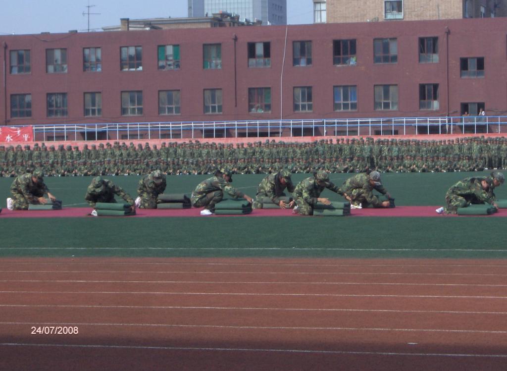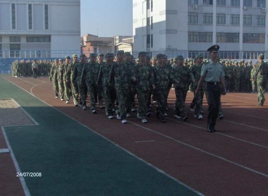 2008年7月24日上午8:30,OK138太阳集团2007年学生军训汇报暨总结表彰大会在学校运动场隆重举行。2007级全体受训学生圆满完成军事技能训练任务,以饱满的精神面貌接受了领导的检阅。庄严的阅兵式分列式汇报表演后,我校国防生连队、武警指挥学院的教官分别进行了擒敌拳、倒功等精彩表演。