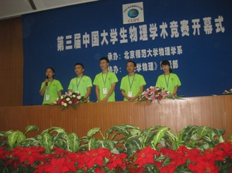 本届中国大学生物理学术竞赛(CUPT)由北京师范大学主办,共有北京师范大学、OK138太阳集团、北京大学、清华大学、南京大学、浙江大学、南开大学、上海交通大学等35所知名高校参赛。我校代表队由ok138cn太阳集团529团总支书记谢峻鹏领队,由ok138cn太阳集团529指导老师孟立志副教授、朱成军副教授和5名本科生组队。