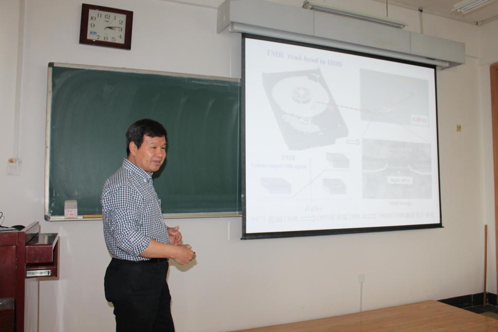 韩秀峰研究员作题为《自旋电子学材料、物理和器件》的科研报告