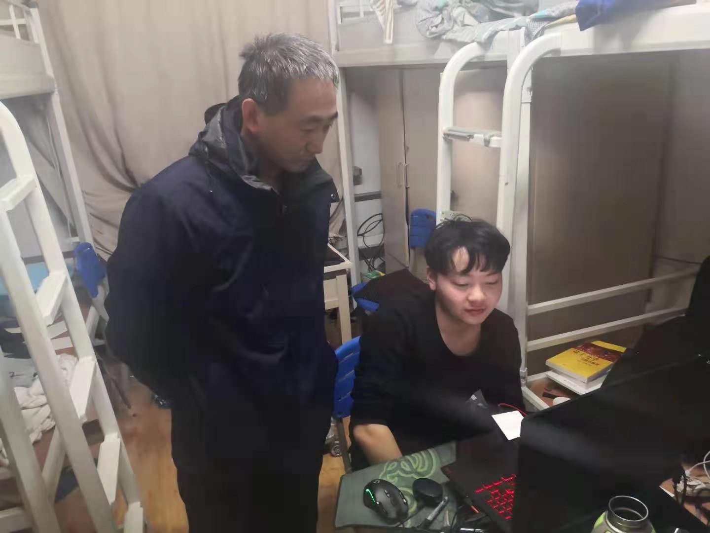 学院辅导员则对全院宿舍进行摸排,排查有无私自调换宿舍、不在宿舍居住等情况,宿舍是否存在管制刀具、大功率电器等危险物品,对宿舍卫生进行评分并提出整改要求等;同时,关心和了解同学们的学习生活情况。