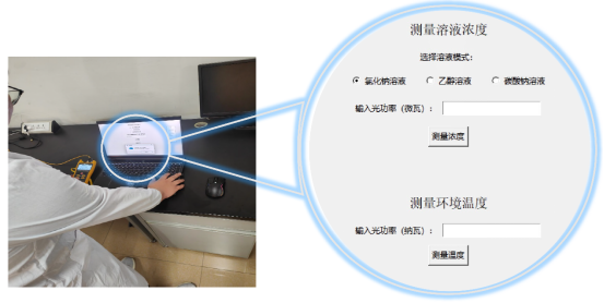 三是实验装置实现了溶液浓度和温度的实时测量。团队成员开发了输出光功率与浓度/温度实时转换的计算模块,响应时间约为1秒,显著提高了传感系统的实时测量能力。