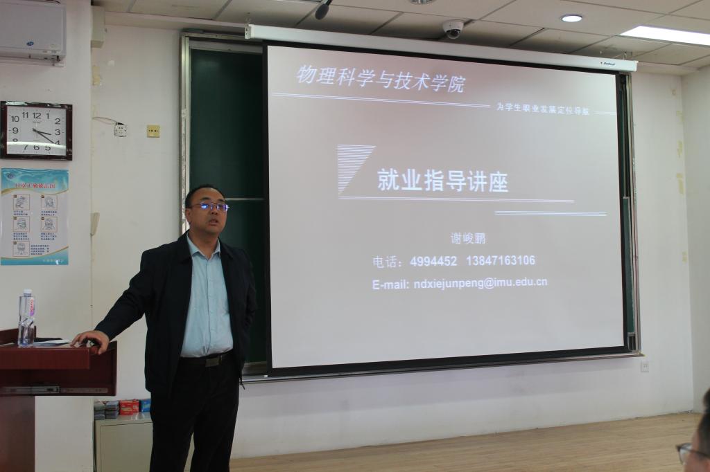 讲座中,谢峻鹏老师向毕业生介绍了学院各个专业当前的就业形势,分析了往年的就业数据,要求同学们从实际出发,调整心态,端正就业观念,合理确定就业意向,积极主动获取就业信息,参加就业洽谈会,抓住各种机会充分展示自己的才能和专业特长,按照学校就业工作的进程安排好自己的求职进程。同时,谢老师还就毕业生就业的基本程序做了详细说明。
