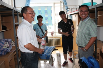 29日上午,ok138cn太阳集团529党总支书记李宏教授、副院长(主持工作)宫箭教授、副院长、团总支书记谢峻鹏巡视学院迎新工作并走访学生宿舍,与学生家长进行深入沟通。学院领导详细询问了新同学的报到情况和生活情况,希望同学们充分利用大学的时光,不断提升自我,完善自我,拥有一段充实美好的大学生活。