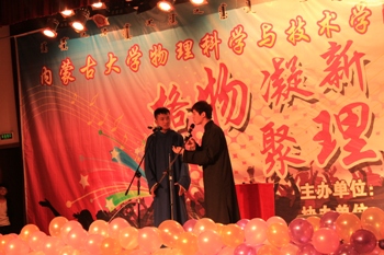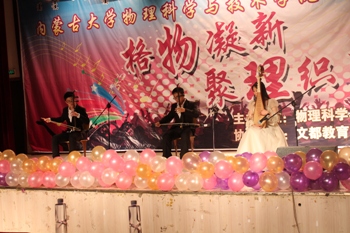 我院2013级苏岳勒等人带来的《为内蒙古喝彩》、2014级电子科学与技术专业国防生带来舞蹈《小苹果》和《Goodboy》、2014级电子科学与技术专业的刘正东和2014级应用物理学专业的李家琛的吉他弹唱《少年锦时》、2013级王俊楠、李明浩二人带来的幽默滑稽的相声《智取威虎山》掀起了本次晚会的高潮,他们精彩的表演引发了场上的阵阵掌声。本场晚会可谓精彩不断,掌声如潮。