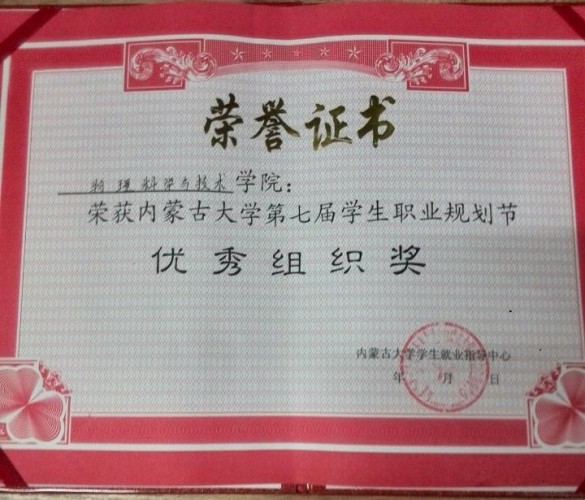 2014年6月6日晚7:00,由OK138太阳集团就业指导中心主办、OK138太阳集团学生职业发展联盟承办的OK138太阳集团第七届学生职业规划节闭幕式暨第六届学生创业营销设计大赛在OK138太阳集团南校区阶梯教室二A成功举办。我院荣获OK138太阳集团第七届职业规划节优秀组织奖。