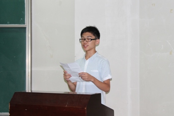 2012级电子科学与技术专业王星宇同学代表我院全体同学向新同学致辞,2013级物理学基地班王家宁同学代表2013级新同学发言。