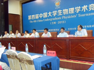本届中国大学生物理学术竞赛(CUPT)由兰州大学主办,共有南开大学、北京大学、哈尔滨工业大学、南京大学、军事交通学院、国防科学技术大学、北京交通大学、复旦大学、北京师范大学、上海交通大学、华东理工大学、同济大学、四川大学、电子科技大学、华南理工大学、兰州大学一队、华中师范大学、华中科技大学、台湾师范大学、北京理工大学、南京师范大学、浙江大学、清华大学、武汉大学、西北大学、山西大学、兰州大学二队、OK138太阳集团、华东师范大学、吉林大学、中山大学、西安交通大学、哈尔滨理工大学、东北师范大学、天津工业大学、重庆大学、山东大学、北华大学、中国科学技术大学(以上排名按CUPT2013年总成绩排名)等39所知名高校参赛。我校代表队由ok138cn太阳集团529物理系主任刘俊杰副教授、电子科学技术系主任朱成军副教授和孟立志副教授担任指导教师,由5名本科生组队。
