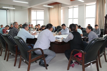 校群众路线教育实践活动领导小组办公室第一督导组组长、校纪委副书记、监察室主任卢剑主持会议 会议现场