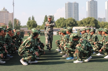 训练场地上,一个个整齐的绿色方阵以饱满的热情踏着整齐的步伐,喊着嘹亮的口号。教官们不厌其烦地示范、指导,同学们认真的做动作,整个训练场地中是一片如火如荼的训练氛围。尽管偶尔还会转错方向,队伍也未能够达到整齐划一的完美,但同学们毫无懈怠。时间分分秒秒地过去,渐渐的,烈日高照,而身边灰飞尘扬,浑身酸痛、挥汗如雨的同学们似乎越战越勇,在一次次不断重复的单调训练中诠释着坚韧不拔。站军姿,纹丝不动;练队列,规范敏捷。经过几天的训练,整个队列的动作在教官口令的引导下逐渐统一、整齐起来。我们看到了同学们坚毅顽强的一面,男生的稳健有力,女生的巾帼气魄,俨然已有了几分军人的风采。