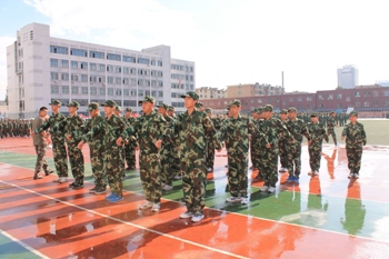 早晨6:30,身着绿色迷彩的同学们已沐浴着柔和的晨光开始了紧张的军事化训练。“稍息,立正,报数,齐步走,正步走,跑步行进,向左看齐”——军训的乐章演奏着军人的“钢铁长城”。