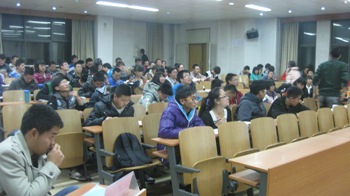 朱俊老师结合自身经历讲述了对大学生活的感悟,并期望同学们在大学生活中要有自己的兴趣爱好,坚持自己的目标。要充分利用大学时光,充实自己,为实现人生目标打下坚实的基础。