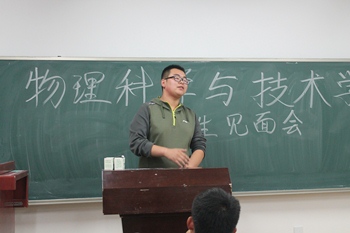 会上,2013级数理学基地专业徐开轩同学、2015级电子科学与技术专业曹磊同学和2015级应用物理学专业王晋花同学将自己学习的经验分享给了2016级新同学。2015级数理学基地专业武娜同学、2014级电子科学与技术专业刘正东同学和2013级应用物理学专业房景治同学为大家讲述了大学生活中如何利用课余时间,积极参加社团、比赛等来丰富自己的生活。2013级数理学基地专业王浩宇同学、2013级电子科学与技术专业王恩琪同学和2014级应用物理学专业郝蒙同学为大家分享了自己参加学生工作的得失,以及如何平衡好学习和学生工作之间的关系。2014级数理学基地专业张鑫垚同学、2013级电子科学与技术专业张云阳同学、2014级应用物理学专业王一帆同学告诉了大家同学之间的相处之道,遇事当思缘分来之不易,不因琐碎小事影响同学情谊。2014级数理学基地专业郭静文同学、2013级电子科学与技术专业赵永强同学和2013级应用物理学专业苏桢同学为大家介绍了如何合理规划自己的大学四年生活,过一个充实富有意义的大学。