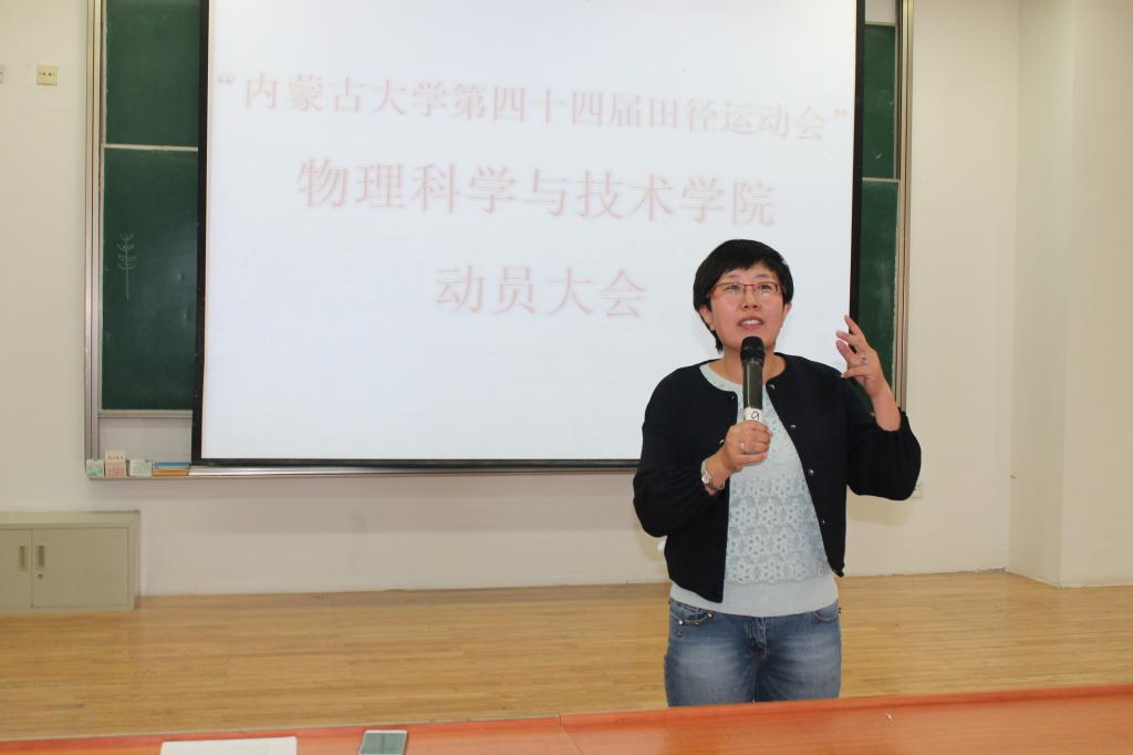 会上,李妮老师要求同学们在运动会期间按时集合、整齐列队、文明入场、保证赛场良好秩序、严格执行运动会期间的请假、销假制度,重点强调了同学们在运动会期间的安全问题。并希望同学们以饱满的精神和积极的态度参加本届运动会,做到步调统一、团结一致,再创佳绩。李老师希望通过大家的共同努力,使我院各方面的成绩都能有新的突破,充分展现出物理学子的良好风貌和优秀品质。