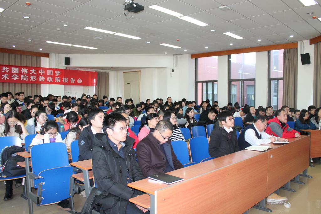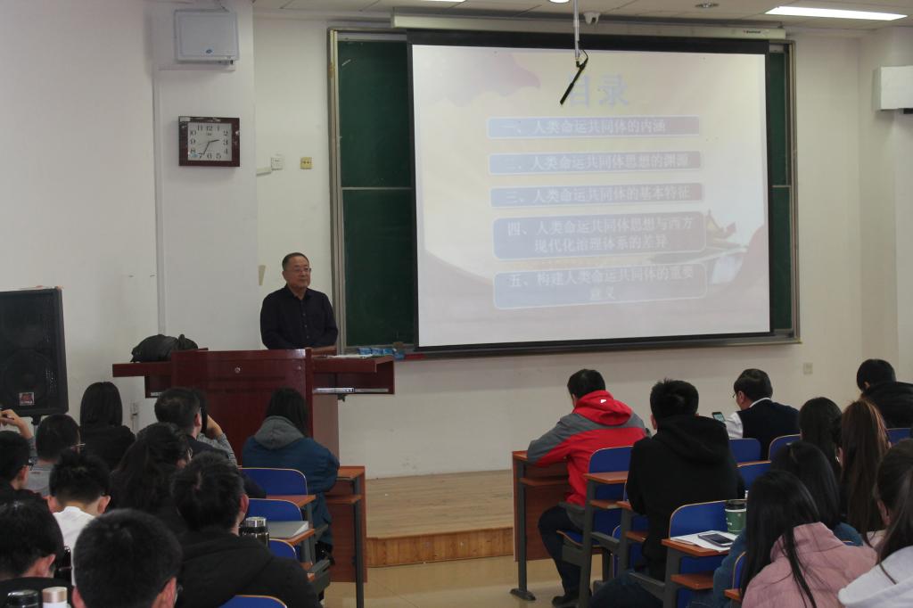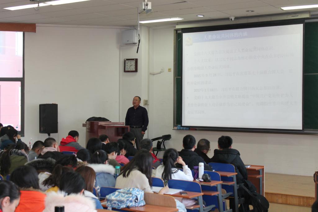 2018年11月29日下午2:30,在综合楼阶四教室,ok138cn太阳集团529成功举办了由我院党总支书记李宏教授以“构建人类命运共同体,履行大国担当使命”为题的“建设亮丽内蒙古,共圆伟大中国梦”系列形势政策报告会。