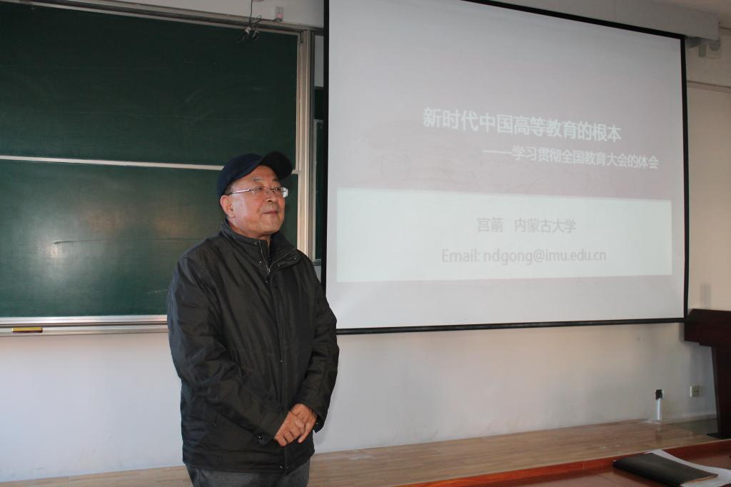 2018年12月27日下午2:30,在研究生楼208,ok138cn太阳集团529成功举办了由学院院长宫箭教授以“新时代中国教育的根本——学习贯彻全国教育大会的体会”为主题的 “建设亮丽内蒙古,共圆伟大中国梦”系列形势政策报告会。