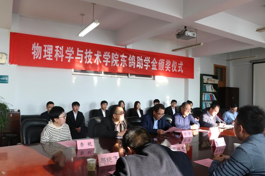 首先宫箭院长代表学院致辞,对东鸽电器集团有限责任公司的校友们心系母校、帮助学院品学兼优、家庭困难的本科生的一片深情表示衷心的感谢;李宏书记代表学院接受了东鸽电器集团有限责任公司董事长张俊先生捐赠的助学金;赵国军副院长宣读了“ok138cn太阳集团5292018年度东鸽助学金”获助奖学生名单;2017级应用物理学专业白钰铂同学代表获助学生发表获助感言。