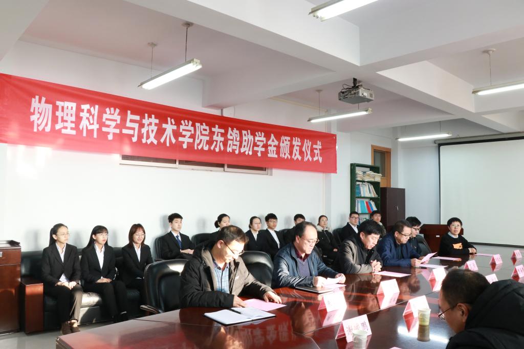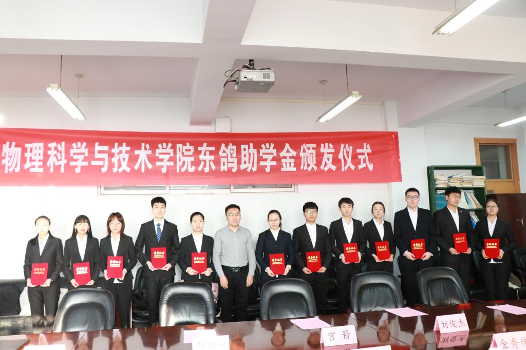 之后,朱俊霞女士为获得一等“东鸽”助学金同学颁发证书;贺瑞龙先生为获得二等“东鸽”助学金同学颁发证书。
