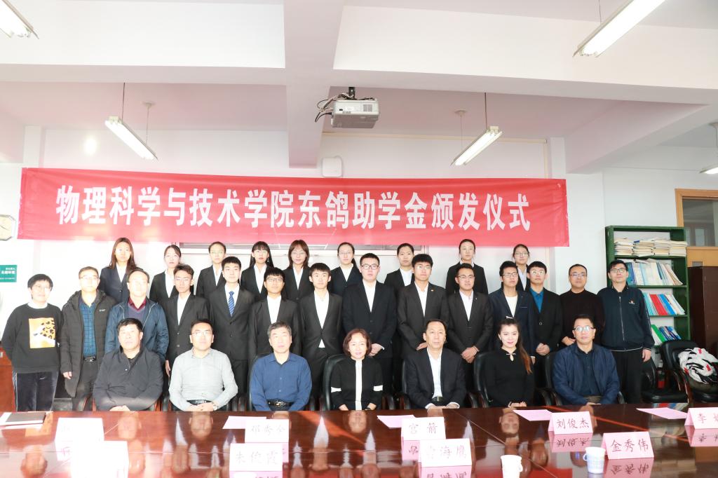 首先宫箭院长代表学院致辞,对内蒙古东鸽电器集团有限责任公司的校友们心系母校、帮助学院品学兼优、家庭困难的本科生的一片深情表示衷心的感谢;邓秀全书记代表学院接受捐赠;赵国军副院长宣读了“ok138cn太阳集团5292019年度东鸽助学金”获助学生名单;2017级应用物理学专业戴峣同学代表获助学生发表获助感言。