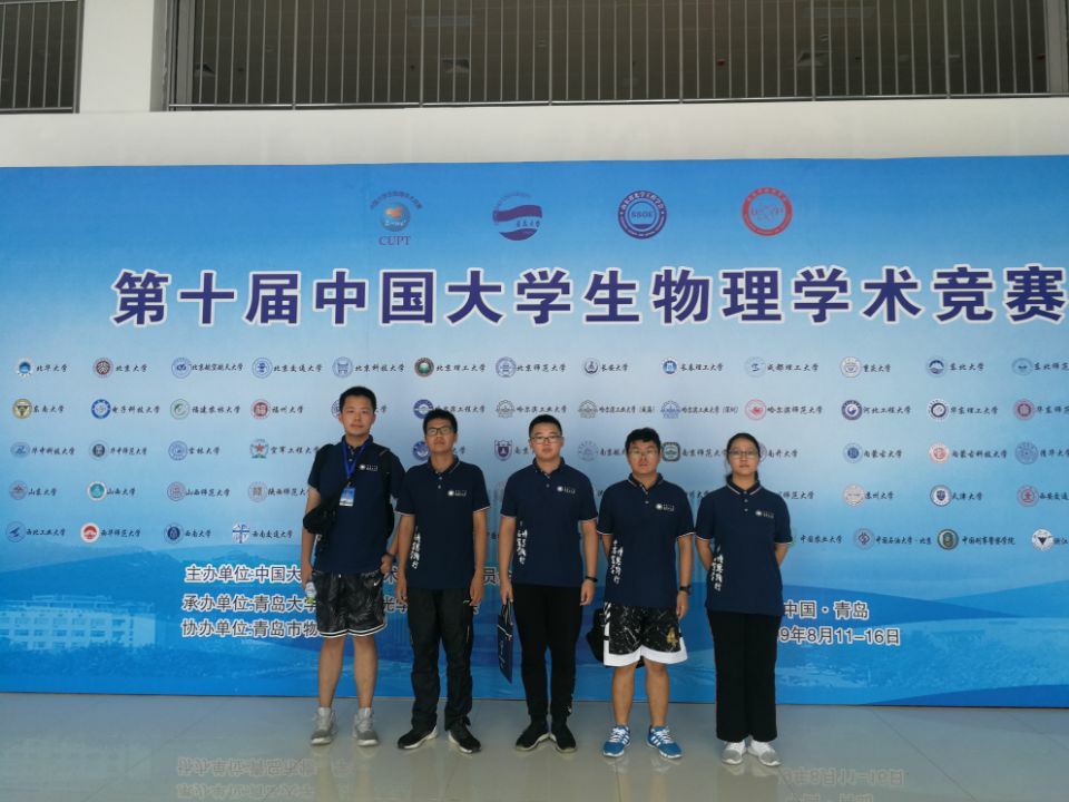 第十届中国大学生物理学术竞赛(CUPT)于2019年8月11日至8月16日在青岛大学举办。本次比赛我校领队为ok138cn太阳集团529党总支副书记谢峻鹏老师和ok138cn太阳集团529学生会科技部部长朱文培,在刘俊杰老师、白晓磊老师、张代兵老师三位老师的悉心指导下,由ok138cn太阳集团529本科生赵鑫磊、韩开元、张子雍、李勇伟、戴峣组成的OK138太阳集团代表队在大赛中荣获大赛三等奖。