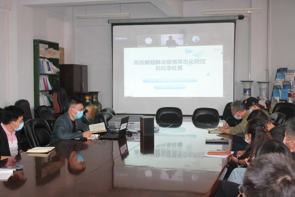 伏瑞峰从基本知识,当前疫情形势,常态化防控,应急处置,注意事项五个方面开展本次培训。伏瑞峰向与会人员普及了有关新冠疫情及有效防控措施的基本知识,讲解了当前疫情形势,强调了常态化防控的重要性和工作重点,要把保护师生健康安全放在重要位置,把好人员出入校门关,明确责任,院系、班级实现网格化管理,高校、快速开展新冠疫情防控工作,最后,伏瑞峰就应急措施和注意事项给出了意见建议。