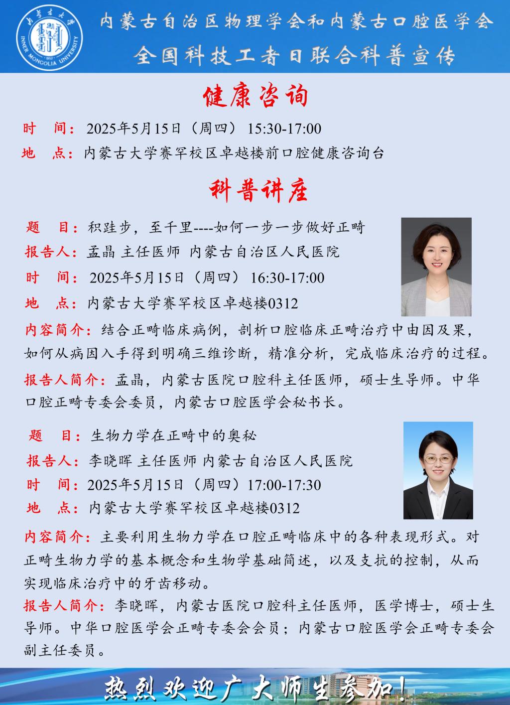 2025年内蒙古物理学会和口腔医学会5月30日科技工作者日联合科普宣传